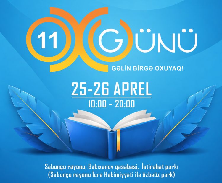 NUHÇIXAN xəbər verir ki, 25–26 aprel tarixlərində Bakı şəhəri, Sabunçu rayonu, Bakıxanov qəsəbəsində yerləşən Heydər Əliyev Parkında “Oxu Günü–11 Kitab Festivalı” keçiriləcək.