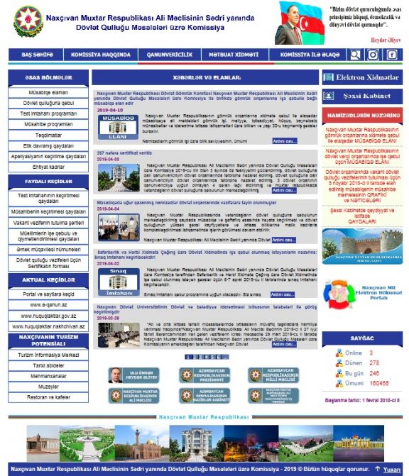 Komissiyadan NUHÇIXAN-a verilən məlumata görə, Naxçıvan Muxtar Respublikası Ali Məclisinin Sədri yanında Dövlət Qulluğu Məsələləri üzrə Komissiyanın internet portalının (www.dqmk.nmr.az) yeni variantı istifadəyə verilib. Komissiyanın yeni internet portalı istifadəçi yönümlü olmaqla məlumatların əldə edilməsini daha da asanlaşdırıb.