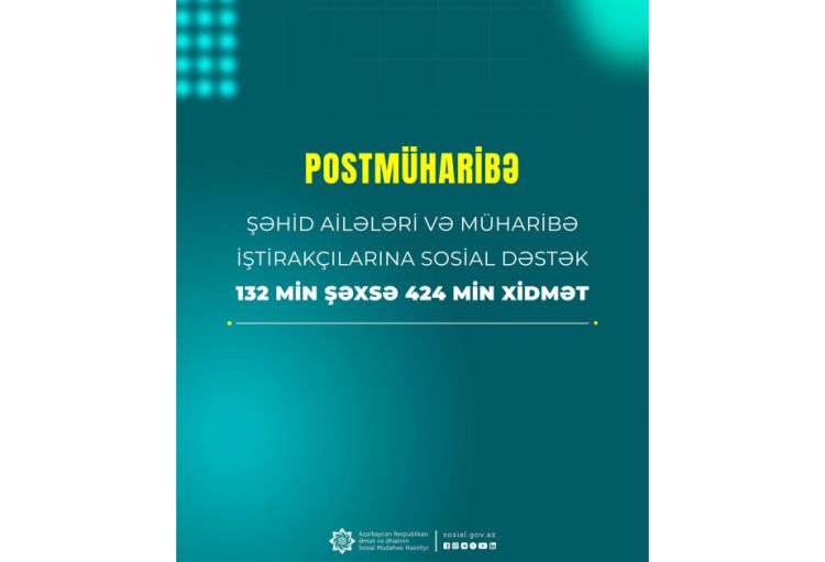 Postmüharibə dövründə şəhid ailələri üzvləri və müharibə iştirakçıları olan 132 min şəxsə 424 min xidmət göstərilib