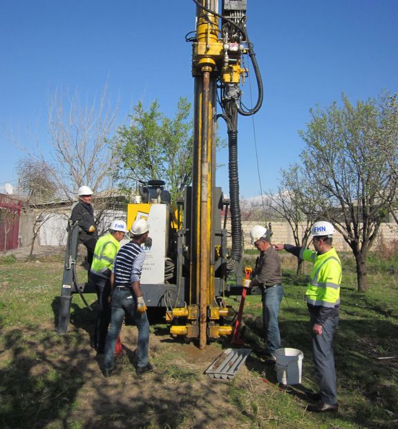 Ərazinin mühəndisi-geoloji şəraitini qiymətləndirmək məqsədi ilə sahədə dərinliyi 15 metr olan 3 ədəd və 8 metr olan 1 ədəd mühəndis-geoloji kəşfiyyat quyusu qazılıb. Kəşfiyyat quyularının həcmi 53 metr təşkil edib. Qazılan quyulardan qruntların litoloji kəsilişini əhatə etməklə kifayət qədər qurunt nümunələri götürülərək, laboratoriya şəraitində fiziki-mexaniki xüsusiyyətləri araşdırılıb və müvafiq hesabat hazırlanıb.