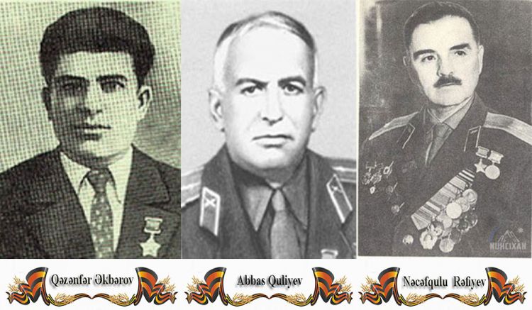 1.Qəzənfər Qulam oğlu Əkbərov- 1917-ci ildə Naxçıvanın Cəhri kəndində anadan olub. 1940-cı ildə Naxçıvan Müəllimlər İnstitutunu bitirib. Müəllim işləyib. Faşist Almaniyası SSRİ-yə hücum etdikdən sonra Sovet Ordusuna yazılıb və Tbilisi topçuluq məktəbində təhsil alıb. 1942-ci ildən döyüş yoluna Qafqaz dağlarının ətəklərindən başlayan Q. Əkbərov topçu komandir kimi Ukraynanın, Belarusun alman faşistlərindən təmizlənməsində fəal iştirak edib.