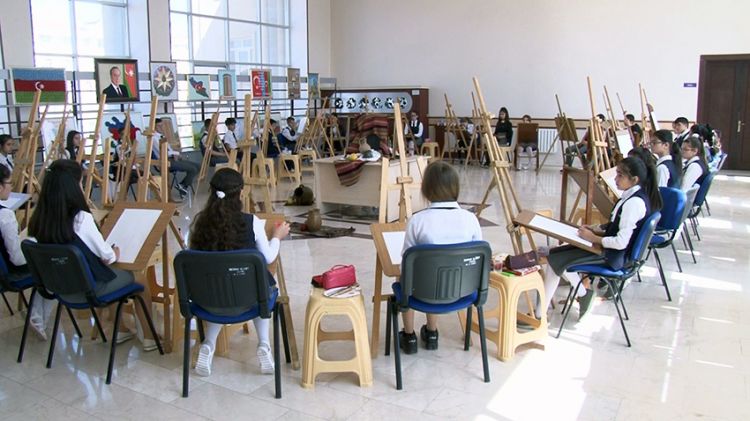 Sonda şagirdlər tərəfindən çəkilən rəsm əsərlərindən ibarət sərgiyə baxış olub.