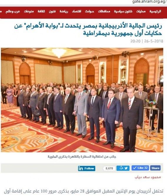 Misir qəzetinin portalında Azərbaycan Xalq Cümhuriyyətinin 100 illiyi ilə bağlı geniş məlumat verilib
