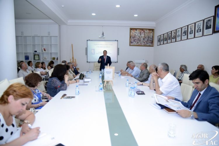 Daha sonra “Azərbaycan ədəbiyyatı tarixi”nin birinci cildinin məsul redaktoru, filologiya üzrə elmlər doktoru, professor Məhərrəm Qasımlı məruzə ilə çıxış edərək kitab haqqında ətraflı məlumat verib.
