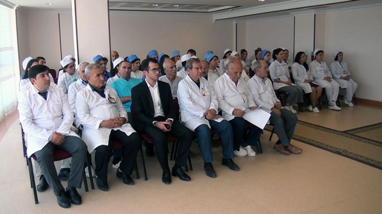 Sonra Mərkəzin həkimləri Abbas Əliyev “Hepatit B və C xəstəliklərinin etiopatogenezi, yoluxma yolları və klinikası”, Tofiq Hacıyev “Hepatit B, C və D xəstəliklərinin müasir müayinə və müalicəsi, profilaktikası” mövzularında çıxış ediblər.