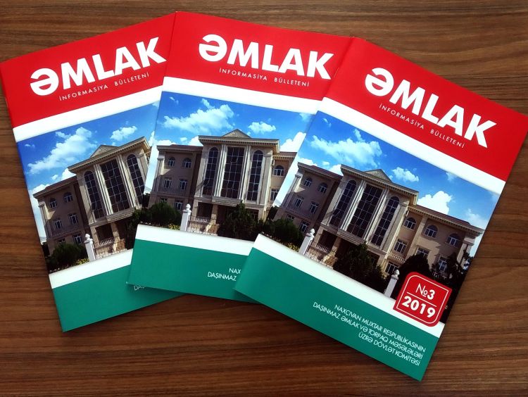 “Əmlak” informasiya bülleteni Naxçıvan Muxtar Respublikasının Ədliyyə Nazirliyində qeydiyyatdan keçib və ildə iki dəfə nəşr olunur.