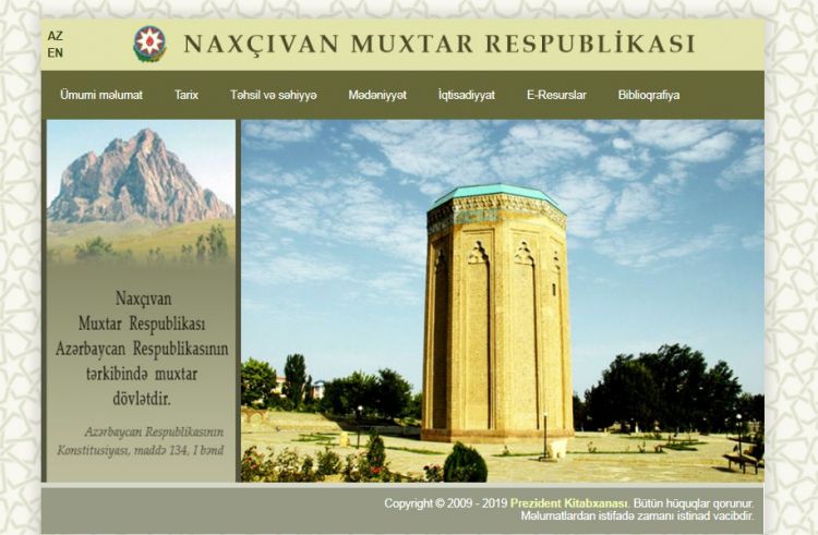 Qeyd edək ki, preslib.az saytında Naxçıvan Muxtar Respublikası barədə elektron layihə 2009-cu ildə yaradılmışdır. İnternet istifadəçiləri saytdakı Azərbaycan və ingilis dillərində fəaliyyət göstərən nakhchivan.preslib.az bölməsini seçməklə Naxçıvan Muxtar Respublikasının ərazisi, tarixi, idarəetmə quruluşu, görkəmli şəxsiyyətləri, muxtar respublika ilə bağlı rəsmi sənədlər, iqtisadiyyat, elm, təhsil, səhiyyə və mədəniyyətin inkişafı ilə bağlı məlumatlar, elektron kitablar və məqalələr toplusu ilə ətraflı tanış olmaq imkanına malikdirlər.