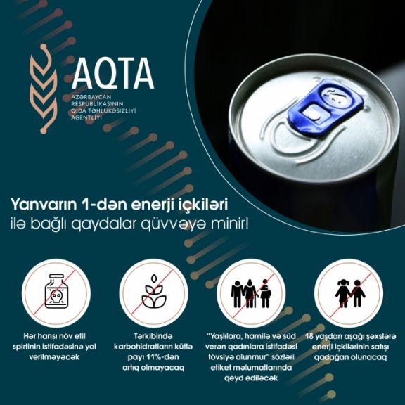 Yanvarın 1-dən enerji içkilərinin istehsalında hər hansı növ etil spirtinin istifadəsinə yol verilməyəcək və tərkibində karbohidratların kütlə payı isə 11 faizdən artıq olmayacaq.