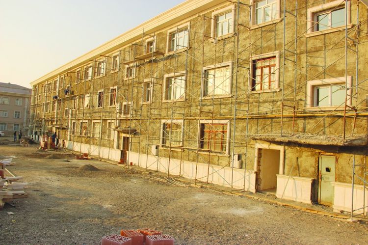 Hazırda zirzəmidə və dəhlizlərdə təmir işləri davam etdirilir, mərtəbələrarası pilləkənlərə travertin üzlük döşənir. Binanın ön və arxa tərəfində layihədə nəzərdə tutulmuş abadlıq işləri görülür, səkilərə kilit daşlar döşənir, kənarlarına bardürlər düzülür.