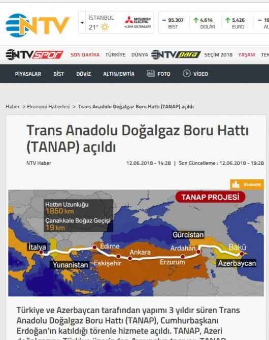 TRT HABER, NTV, HABER TURK, CNN TÜRK və digər televiziya kanalları reportajlarında TANAP-ı strateji qaz xətti kimi dəyərləndirib.