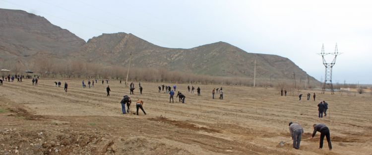 Bundan əlavə “Dəhnə” adlanan ərazidə salınan üzüm bağına 220 üzüm kolu əkilib.