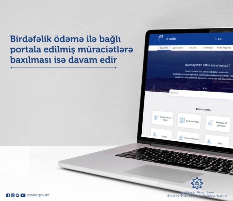 Ümumilikdə isə, işsiz və xüsusi karantin rejiminə görə işini itirən aztəminatlı şəxslər tərəfindən birdəfəlik ödəmə ilə bağlı e-sosial.az portalına edilən müraciətlərin qəbulu artıq yekunlaşıb.
