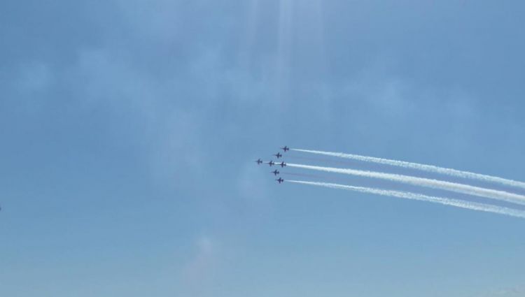 NUHÇIXAN xəbər verir ki, iyunun 26-da hərbi paraddan sonra “Solo Türk” və “Türk Ulduzları” aviaqrupuna daxil olan 2 ədəd F-16 və 8 ədəd F-5 tipli təyyarələr Bakı buxtası üzərində nümunəvi uçuşlar keçirirlər.