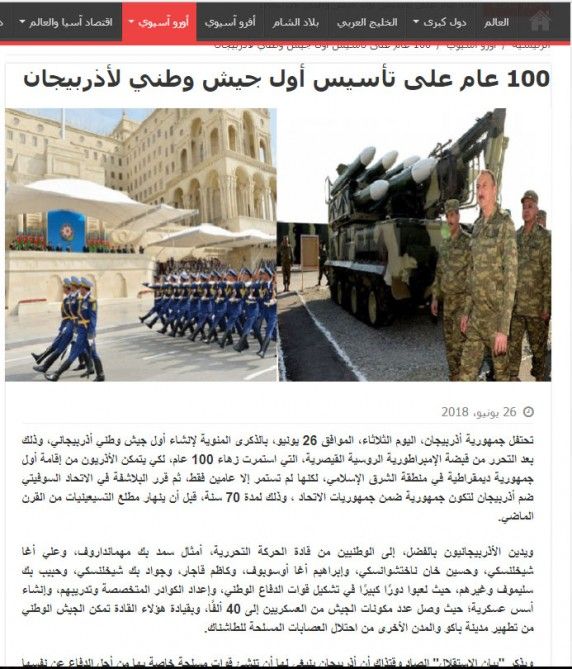Misirin nüfuzlu “Əl Əhram”, “Cumhuriyyə” qəzetlərində və “Asiya Əl-Youm” xəbərlər agentliyində Azərbaycanın bu ölkədəki səfiri Tural Rzayevin Azərbaycanın Silahlı Qüvvələrinin yaranmasının 100-cü ildönümü ilə bağlı məqaləsi dərc edilib.