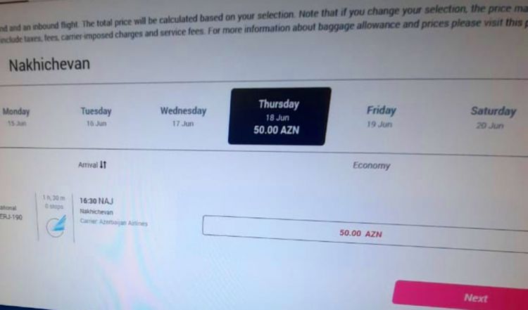 Xəbər verdiyimiz kimi, iyunun 18-də saat 12:00-da Bakıdan Naxçıvana ilk aviareys həyata keçiriləcək. Həmin gün saat 15:00-da isə ikinci aviareys yerinə yetiriləcək.