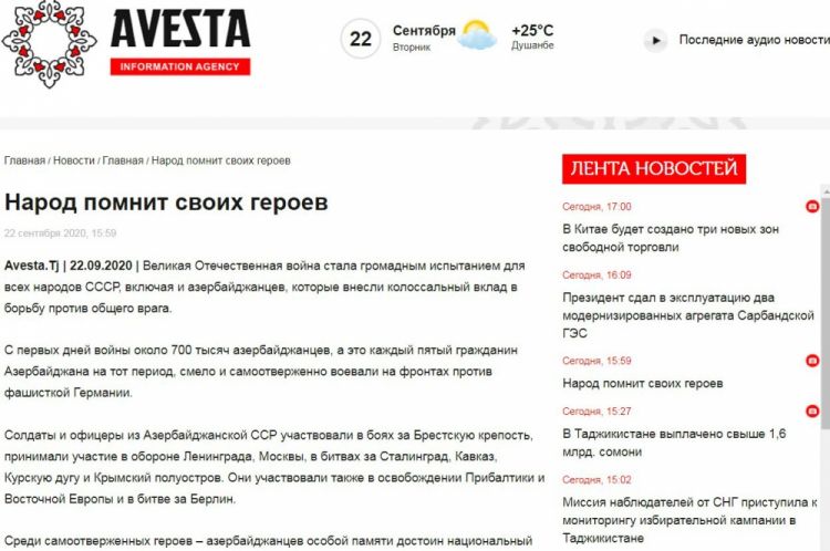 Tacikistanın internet portalında əfsanəvi partizan Əhmədiyyə Cəbrayılov haqqında məqalə yerləşdirilib