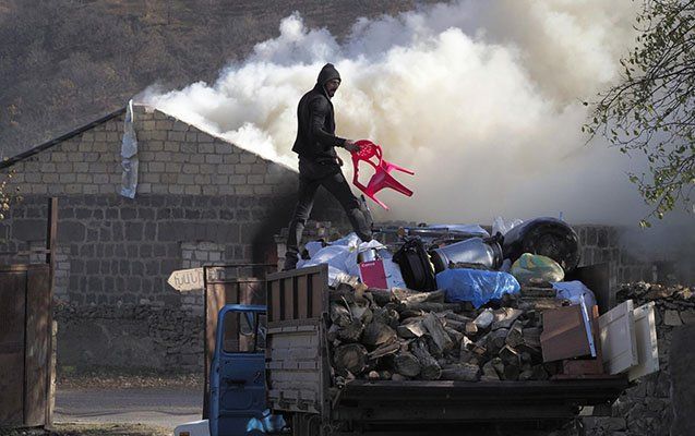 Azərbaycanın mərhəmətinə sığınaraq onlara yaradılan şəraitdən istifadə edərək əvvəlcə öz evlərində nə varsa hamısını, hətta unitazlarını belə qucaqlarında daşıyıb avtomobillərə yüklədilər. Bu haradasa qəbulediləndir. Müharibəni uduzmuş işğalçı dövlətin vətəndaşları yaxşı bilirlər ki, bir zamanlar bura köçürüldükləri və indi də yenidən üz tutduqları Ermənistanda iqtisadi vəziyyət o qədər ağırdır ki, orada onları ancaq səfalət və yaşamaq uğrunda mübarizə gözləyir. Halbuki, Dağlıq Qarabağla bağlı əvvəllər aparılan danışıqlarda Azərbaycan tərəfi ermənilərə seçim üçün yetərincə humanist təkliflər vermişdi. Lakin məkrli erməni xisləti və səriştəsiz siyasəti bu dəfə də özünü büruzə verdi və necə deyərlər, çanaq öz başlarında çatladı. Əşyaları toplayandan sonra ermənilər özlərinəməxsus daha bir dağıdıcı, radikal, vəhşi xasiyyətlərini sərgiləməyə başladılar. Bir zaman Kəlbəcərdən zorla bir neçə saata çıxarılan azərbaycanlılara məxsus binalarda yaşayan ermənilər yaşadıqları evlərə od vurub yandırdılar. Hətta bu mənzərəyə ailəliklə yığışıb soyuqqanlılıqla tamaşa etdilər. Beləliklə, ermənilər yanan evlərə, dünya isə onların vəhşiliklərinə baxdı. Bu isə erməni toplumu üçün hər hansı bir müqəddəs mənəvi dəyərin olmadığını sübut edir. Bununla ürəyi soyumayan haylar Kəlbəcər meşələrindəki ağacları doğrayıb özləri ilə Ermənistana apardı, apara bilmədiklərinə isə od vurdular. İndi isə məğlubiyyət qisasının məkrli hədəfi təbiət oldu. Bu addımları, hadisələri lentə alan rusiyalı və digər əcnəbi ölkələrin jurnalistləri, rusiyalı sülhməramlılar heyrətlə izlədilər.
