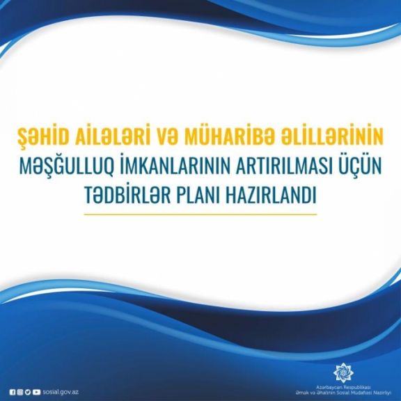 Şəhid ailələri və müharibə əlillərinin məşğulluq imkanlarının artırılması üçün tədbirlər planı hazırlanıb