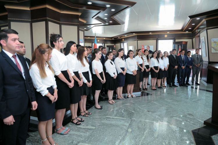 Sonra müsabiqəni uğurla başa vurmuş və dövlət orqanlarında işə başlamış namizədlər Azərbaycan Respublikasına sadiq olacaqlarına, onun Konstitusiyasına dönmədən əməl edəcəklərinə, dövlət sirrini və xidməti sirri qoruyacaqlarına, dövlət qulluğunun onlara verdiyi hüquqları və üzərlərinə qoyduğu vəzifələri qərəzsiz, vicdanla, yalnız qanunauyğun surətdə və dövlətin mənafeyi naminə həyata keçirəcəklərinə and içiblər.
