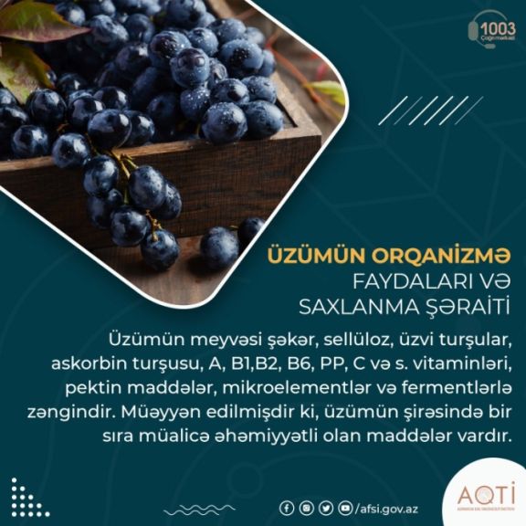 Üzüm dişlərin emalının dağılmasına səbəb olduğu üçün onu yedikdən sonra dişləri təmiz yumaq məsləhətdir.