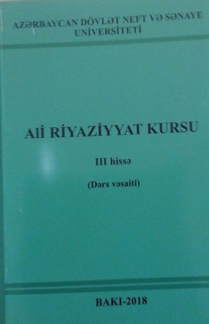 Azərbaycan Dövlət Neft və Sənaye Universitetinin dosentləri Nurəddin Məmmədov və Əli Musayevin “Ali riyaziyyat kursu” (III hissə) adlı dərs vəsaiti nəşr olunub.