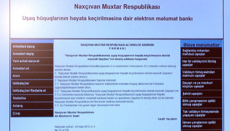 NUHÇIXAN xəbər verir ki, Naxçıvan Muxtar Respublikası Ailə, Qadın və Uşaq Problemləri üzrə Dövlət Komitəsində muxtar respublikada uşaq hüquqlarının həyata keçirilməsinə dair yaradılan elektron məlumat bankına 150 minə yaxın uşaq haqqında fərdi məlumatlar daxil edilib. Bu ilin ötən dövründə isə elektron məlumat bankına 3 minə yaxın uşaq haqqında fərdi məlumatlar daxil edilib. Məlumat bankı muxtar respublikada uşaqlarla bağlı hər hansı problemi dərhal aşkar etməyə və həllini asanlaşdırmağa imkan verən mühüm mexanizmdir. Bankda müvafiq nazirlik, komitə və idarələrin verdiyi məlumatlar əsasında muxtar respublikada yaşayan bütün uşaqlar haqqında fərdi məlumatlar toplanıb.