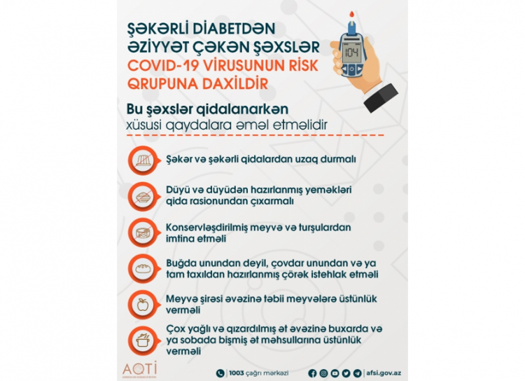Yeni növ koronavirus (COVID-19) xəstəliyini, adətən, yaşlı insanlar, həmçinin somatik xəstəlikləri olan şəxslər daha ağır keçirirlər. Şəkərli diabet xəstələri də koronavirusa yoluxa biləcək yüksək risk qrupu altındadır, ancaq virusun təsir etmə mexanizmi insandan insana dəyişə bilər. Koronavirus yoluxmasının qarşısını almaq üçün belə xəstələrin ilk növbədə tövsiyə olunan qabaqlayıcı, gündəlik profilaktik tədbirlərə riayət etməsi vacibdir.