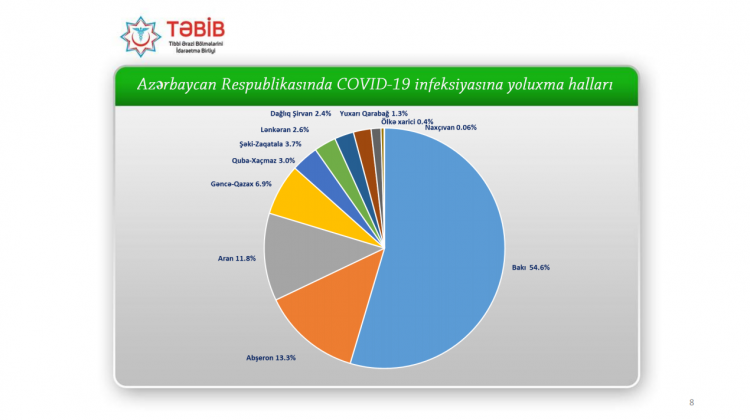 NUHÇIXAN İnformasiya Agentliyi koronavirusinfo.az saytına istinadən xəbər verir ki, ölkəmizdə koronavirusa yoluxma hallarının 54,6 faizi paytaxtın payına düşür.