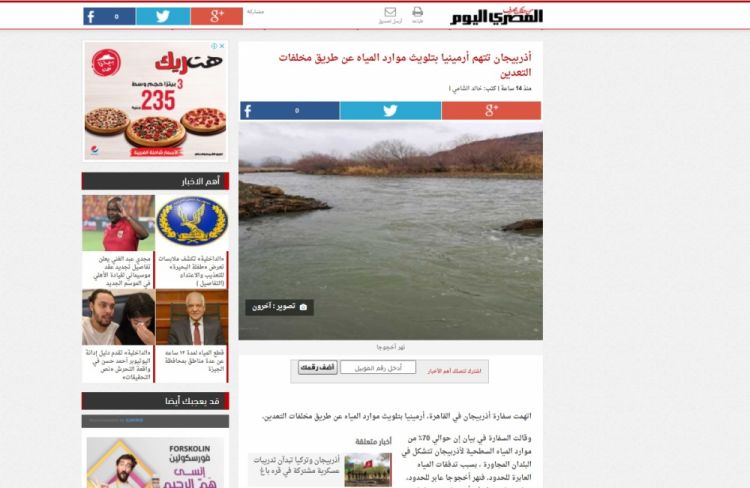 Misirin nüfuzlu “Əl Masr Əl Yom” nəşrində Ermənistanın Azərbaycanla sərhəddə yerləşən Oxçuçayı çirkləndirməsi barədə məqalə dərc olunub.