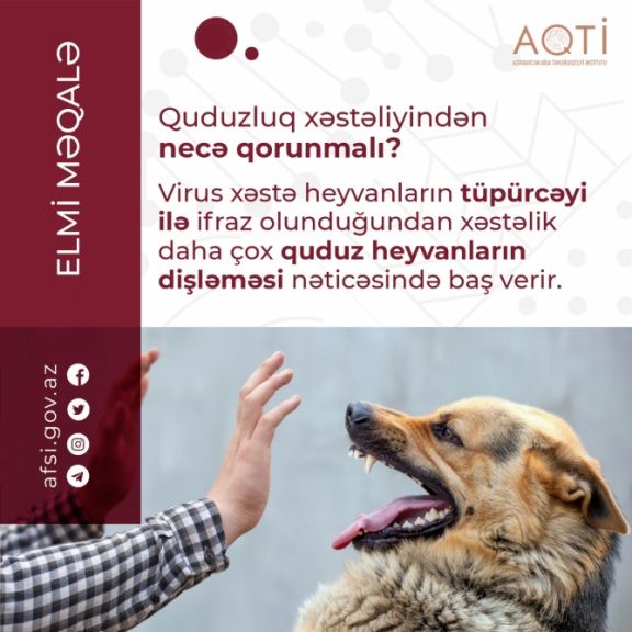 Azərbaycan Qida Təhlükəsizliyi İnstitutunun İctimaiyyətlə əlaqələr və maarifləndirmə departamentindən NUHÇIXAN İnformasiya Agentliyinə bildirilib ki, virus xəstə heyvanların tüpürcəyi ilə ifraz olunduğundan xəstəlik daha çox quduz heyvanların dişləməsi nəticəsində baş verir.