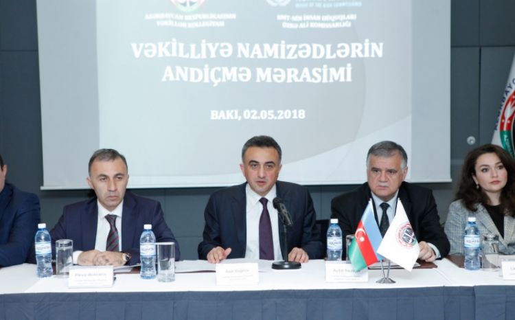 VK-nın sədri qeyd edib ki, növbəti vəkilliyə qəbulla bağlı imtahanın payızda keçilməsi nəzərdə tutulur: "Vəkilliyə qəbul edilən şəxslərə yeni vəsiqələr təqdim olunub. İndiyə qədər vəkillərin vəsiqələri qırmızı kitab formasında idi. Hazırda yeni vəsiqələri beynəlxalq standartlara uyğun olaraq hazırlamışıq. Yeni vəsiqələrdə Azərbaycan dili ilə bərabər, ingilis dilində məlumatlar olacaq".