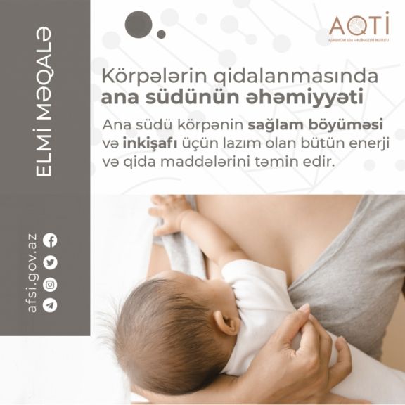 Ana südü yenidoğulmuş körpə üçün əvəzedilməz və ideal qida hesab edilir. O, körpənin sağlam böyüməsi və inkişafı üçün lazım olan bütün enerji və qida maddələrini təmin edir. Xeyirli olması ilə yanaşı, ana südünün həzmi də olduqca asandır. NUHÇIXAN İnformasiya Agentliyi xəbər verir ki, Azərbaycan Qida Təhlükəsizliyi İnstitutundan jurnalistlərə bildirilib ki, ana südü tərkibində balanslaşdırılmış komponentlərin, hormonların, müxtəlif boy və müdafiə faktorlarının (immunoqlobulinlər, fermentlər), eləcə də yüksək miqdarda bioloji aktiv maddələrin olması baxımından körpələrin böyümə və inkişafı üçün unikal hesab edilir. Ana südü, həmçinin ananın sağlamlığı üçün vacib olan reproduktiv prosesin bir hissəsidir.
