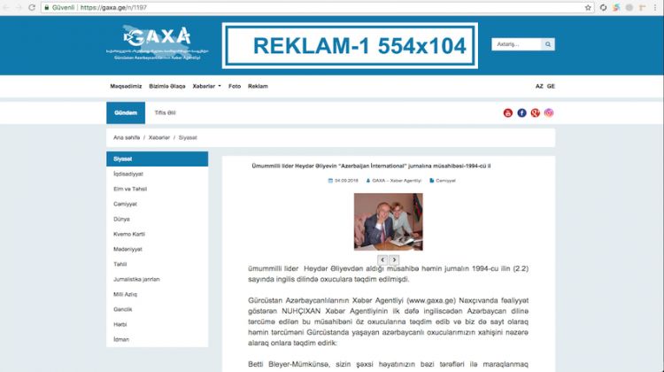 Qeyd edək ki, www.gaxa.ge (Gürcüstan Azərbaycanlılarının Xəbər Agentliyi ) saytı Gürcüstanda yaşayan həmyerlilərimiz tərəfindən yaradılıb. Saytda xəbərlər Azərbaycan və gürcü dillərində təqdim edilir.