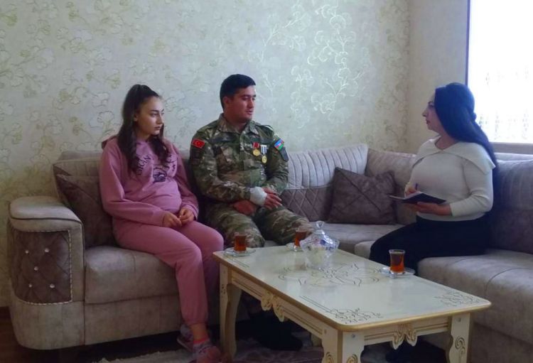 Əsrimizin və yazımızın qəhrəmanı ilə telefon danışığımız olur. O, bizi evinə dəvət edir-yeni mənzilinə. Məmnuniyyətlə dəvəti qəbul edir və Babək rayonunun Babək şəhərinə yol alırıq. Şəhərin mərkəzi küçələrinin birində ucalan yeddi mərtəbəli binanın dördüncü mərtəbəsinə liftlə qalxırıq. Qapını həyat yoldaşı Zivər xanım açır. Bizi mehribanlıqla içəri dəvət edir. İlk baxışdan mənzil işıqlı və geniş olması ilə diqqəti cəlb edir. “Mənziliniz mübarək!” deyib söhbətə körpü salırıq. Müsahibim dərhal formasını əyninə alır. Sağ əlini yaxşı tərpədə bilmədiyinə görə yoldaşı ona kömək edir. Medallarını sinəsinə taxır-həvəslə, sevgi ilə. Hələ ikisi qalır, onu da verəcəklər deyir. Ordu sıralarından tərxis olunsa da, onun bizimlə adi ev geyimində deyil, hərbi formada cəsur döyüşçü obrazında dialoqa girmək istəyi nəzərimizdən yayınmır. Gəncin sevərək seçdiyi peşəsinə olan məhəbbətini, formasına olan sevgisini, sonu zəfərlə bitən müharibə xatirələrini bölüşmək həvəsini səmimi təbəssümlə qarşılayıb söhbətinə diqqət kəsilirik.