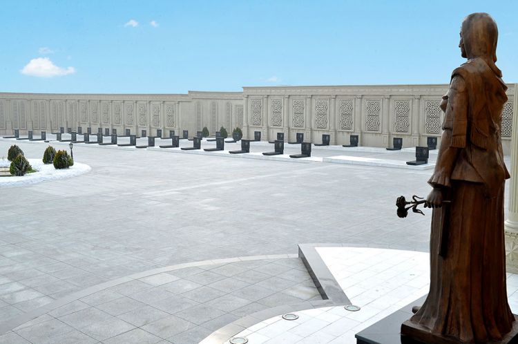 Buradakı məğrur qadın heykəli... Övladlarına ağı deyən o müdrik ananın fəryadını, göz yaşını, qürurunu hamı duyur. Əbədi minnətdarlıq hissi ilə ağır addımlarla keçir məzarların önündən. Xalq şairi Bəxtiyar Vahabzadənin bu misraları ürəklərdən pərvazlanır: