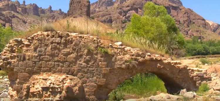 Biləv körpüsünün tağlarından yalnız 2-si salamat qalmışdır. Qalanları uçulub dağılmışdır. Çayın sağ sahilindəki sonuncu sütunu boz rəngli, möhkəm sal qaya əvəz etmişdir. Qayanın ucunda körpünün uçmuş tağının qanadından qalıqlar indi də qalmaqdadır.
