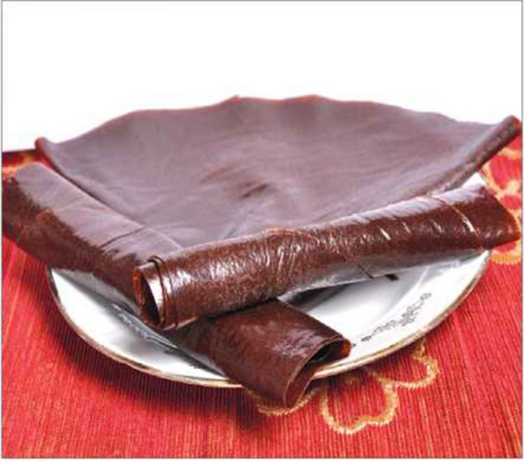 The water must be fully vapoured out when lavasha is coo- ked, the bottom of dish is oiled, the thickened mixture is poured into it thinly, when dried rolled and stored. Lavasha can be made of alycha, pomegranate, apricot.