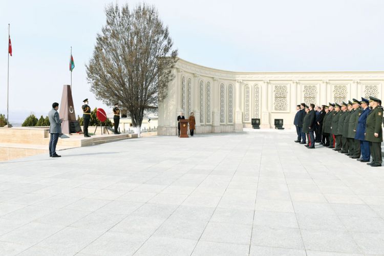Sonra Şəhidlər xiyabanını ziyarət edən tədbir iştirakçıları türk şəhidlərinin xatirəsinə ucaldılan abidənin, Ana abidəsinin önünə əklil və gül dəstələri qoyublar.