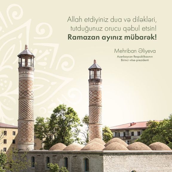 "İnsanları gözəl niyyətlər və xeyirxah əməllər naminə birliyə çağıran mübarək Ramazan ayının başlanması münasibətilə bütün Azərbaycan xalqını və dünya müsəlmanlarını səmimi-qəlbdən təbrik edirəm! Allah dualarınızı, tutduğunuz orucu qəbul etsin, bütün insanlara sağlamlıq və səadət, Vətənimizə sülh, əmin-amanlıq və xoş günlər bəxş etsin!".