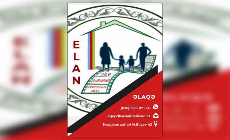 NUHÇIXAN İnformasiya Agentliyi xəbər verir ki, Naxçıvan Muxtar Respublikası Ailə, Qadın və Uşaq Problemləri üzrə Dövlət Komitəsi “Ailə dəyərlərimiz film və fotolarda” mövzusunda VII muxtar respublika yaradıcılıq müsabiqəsi elan edir. Müsabiqədə iştirak etmək istəyən telejurnalist və rejissorlar, ali və orta ixtisas təhsil müəssisələrinin tələbələri, həvəskar və professional fotoqraflar öz film və fotolarını şəxsiyyət vəsiqələrinin surəti və müvafiq anket ilə birlikdə 2022-ci il 30 iyun tarixədək Naxçıvan Muxtar Respublikası Ailə, Qadın və Uşaq Problemləri üzrə Dövlət Komitəsinə təqdim etməlidirlər.