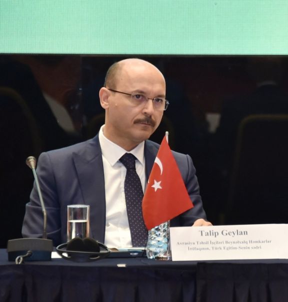 Türk Egitim-Senin sədri Avrasiya Təhsil İşçiləri Beynəlxalq Həmkarlar İttifaqının gördüyü işlər haqqında Forum iştirakçılarına məlumat verib. Qeyd edib ki, Türk mədəniyyətinin, tarixinin gələcək nəsillərə çatdırılması əsas məqsədlərimizdəndir.