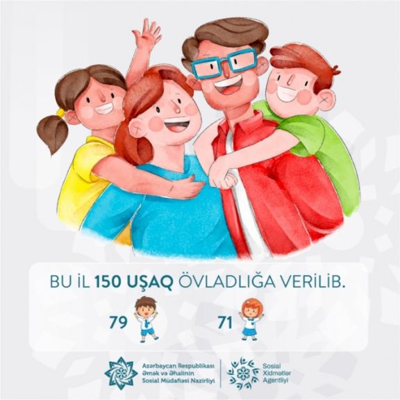 Əmək və Əhalinin Sosial Müdafiəsi Nazirliyinin tabeliyindəki Sosial Xidmətlər Agentliyi tərəfindən bu il 150 uşaq övladlığa verilib. Onlardan 79-u oğlan, 71-i qızdır.
