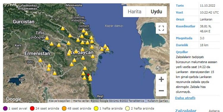 Azərbaycan Milli Elmlər Akademiyası nəzdində Respublika Seysmoloji Xidmət Mərkəzindən NUHÇIXAN İnformasiya Agentliyinə bildirilib ki, yerli vaxtla saat 14:22-də Lənkəran stansiyasından 15 km şimal-qərbdə Lənkəran rayonunda zəlzələ qeydə alınıb. Zəlzələ hiss olunmayıb.