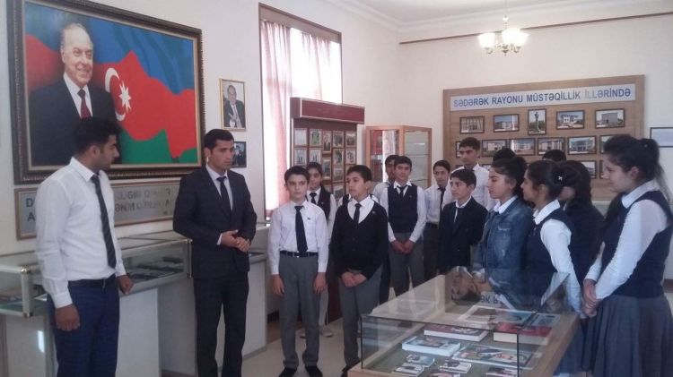 Naxçıvan Muxtar Respublikası Gənclər və İdman Nazirliyinin mətbuat xidmətindən NUHÇIXAN-a verilən məlumata görə, Sədərək rayonunda fəaliyyət göstərən ümumtəhsil məktəblərinin şagirdlərinin rayon Tarix-Diyarşünaslıq Muzeyinə gəzintisi təşkil edilib.