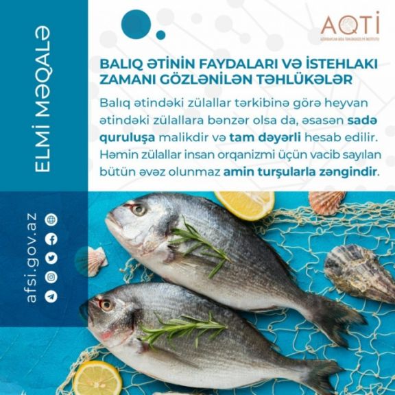 Beləliklə, qiymətli və diyetik qida növü hesab olunan balıq və balıq məhsullarından maksimum faydalanmaq üçün yalnız baytarlıq ekspertizasından keçirilən və müvafiq temperatur rejimində saxlanılan məhsulların istehlakı tövsiyə edilir.