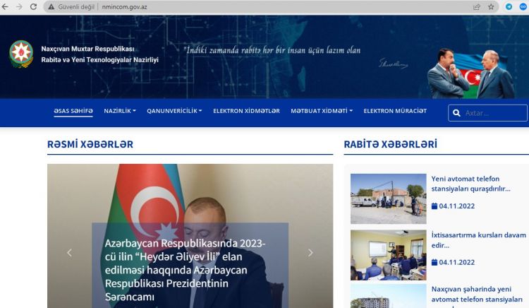 Qeyd edək ki, Muxtar Respublikada 11 dövlət qurumunun rəsmi internet səhifəsi Naxçıvan Muxtar Respublikası Rabitə və Yeni Texnologiyalar Nazirliyinin proqramçıları tərəfindən yenilənib. Belə ki, Naxçıvan Muxtar Respublikası Nazirlər Kabinetinin (nnk.gov.az), Ali Məhkəməsinin (nsupremecourt.gov.az), Mərkəzi Seçki Komissiyasının (nmsk.gov.az), Ekologiya və Təbii Sərvətlər Nazirliyinin (neco.gov.az), Kənd Təsərrüfatı Nazirliyinin (nagro.gov.az), Energetika Dövlət Xidmətinin (nminenergy.gov.az), Dövlət İmtahan Mərkəzinin (ndim.gov.az) internet səhifələrinin audit yoxlamaları aparıldıqdan sonra “GOV.AZ” domen zonasına köçürülməsi planlı olaraq həyata keçirilməkdədir.