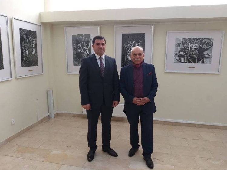 NUHÇIXAN xəbər verir ki, Bakı şəhərində Naxçıvan Muxtar Respublikası daimi nümayəndəliyinin rəhbəri Bəxtiyar Əsgərov Xalq rəssamı professor Arif Hüseynovun 75&75 adlı sərgisinin açılış mərasimində iştirak edib. Açılış mərasimindən əvvəl müəllif daimi nümayəndəliyin rəhbərini sərgi ilə yaxından tanış edib.