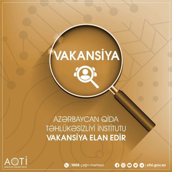 Azərbaycan Qida Təhlükəsizliyi İnstitutu (AQTİ) qida təhlükəsizliyi, baytarlıq və fitosanitar sahələrdə çalışmaq istəyən, müvafiq ixtisasa yiyələnmiş ali təhsilli mütəxəssisləri əməkdaşlığa dəvət edir. Namizədlərdən müvafiq sahəyə uyğun ali təhsil və ixtisası üzrə iş təcrübəsi tələb olunur.