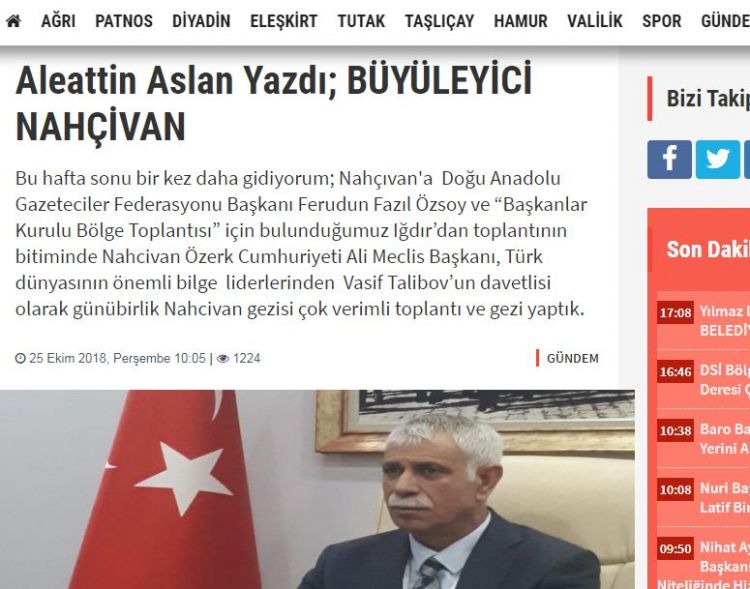Ötən həftəsonu bir daha Naxçıvana getdim. Şərqi Anadolu Jurnalistlər Birliyinin sədri Feridun Fazıl Özsoy və digər həmkarlarımla birlikdə İğdırda keçirilən bölgə konfransından sonra Naxçıvan Muxtar Respublikası Ali Məclisinin Sədri, türk dünyasının müdrik liderlərindən olan cənab Vasif Talibovun dəvətlisi qismində Naxçıvanda səfərdə olduq, bu qədim yurdu gəzdik, çox məhsuldar görüş keçirdik.