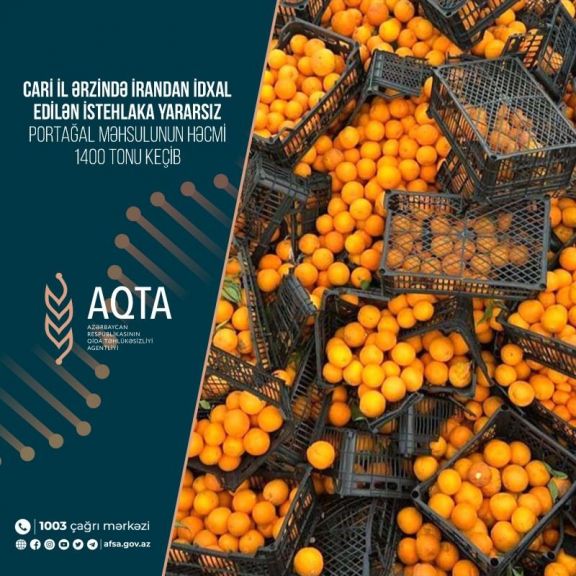 Bu il İrandan idxal edilən istehlaka yararsız portağal məhsulunun həcmi 1400 tonu keçib.